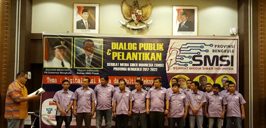 Bengkulu - Serikat Media Siber Indonesia (SMSI) Provinsi Bengkulu resmi dilantik oleh Ketua Umum SMSI Pusat Teguh Santosa, di Hotel Santika, Bengkulu, Senin (2/09/2017).